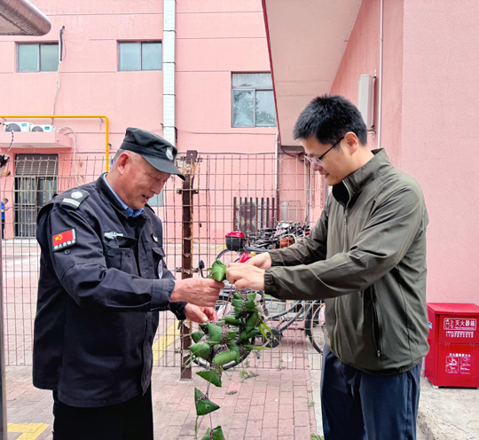 活動(dòng)結(jié)束后,工作人員還第一時(shí)間將新出爐的熱粽子送到現(xiàn)場(chǎng)值班保安、保潔手中,傳遞節(jié)日關(guān)懷。