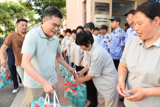 入伏以來,宿遷持續(xù)高溫晴熱天氣,給堅守一線崗位的勞動者帶來不小挑戰(zhàn)。為有效落實防暑降溫措施,切實保障一線員工身體健康與作業(yè)安全,7月24日,建發(fā)公司組織開展了一線員工高溫慰問活動。公司副總經理倪松、相關部門負責人參加了慰問。