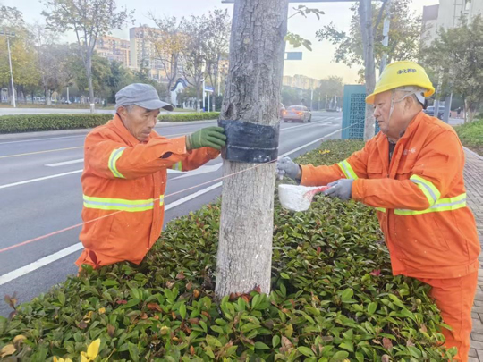 隨著氣溫逐步降低,建發(fā)公司全面啟動(dòng)樹(shù)木涂白工作,為道路、公園、廣場(chǎng)及景觀帶的喬灌木穿上抗凍防寒、抵御病蟲害的“防護(hù)衣”,以保障其安全越冬,提高保存率,進(jìn)一步擦亮城市生態(tài)底色。