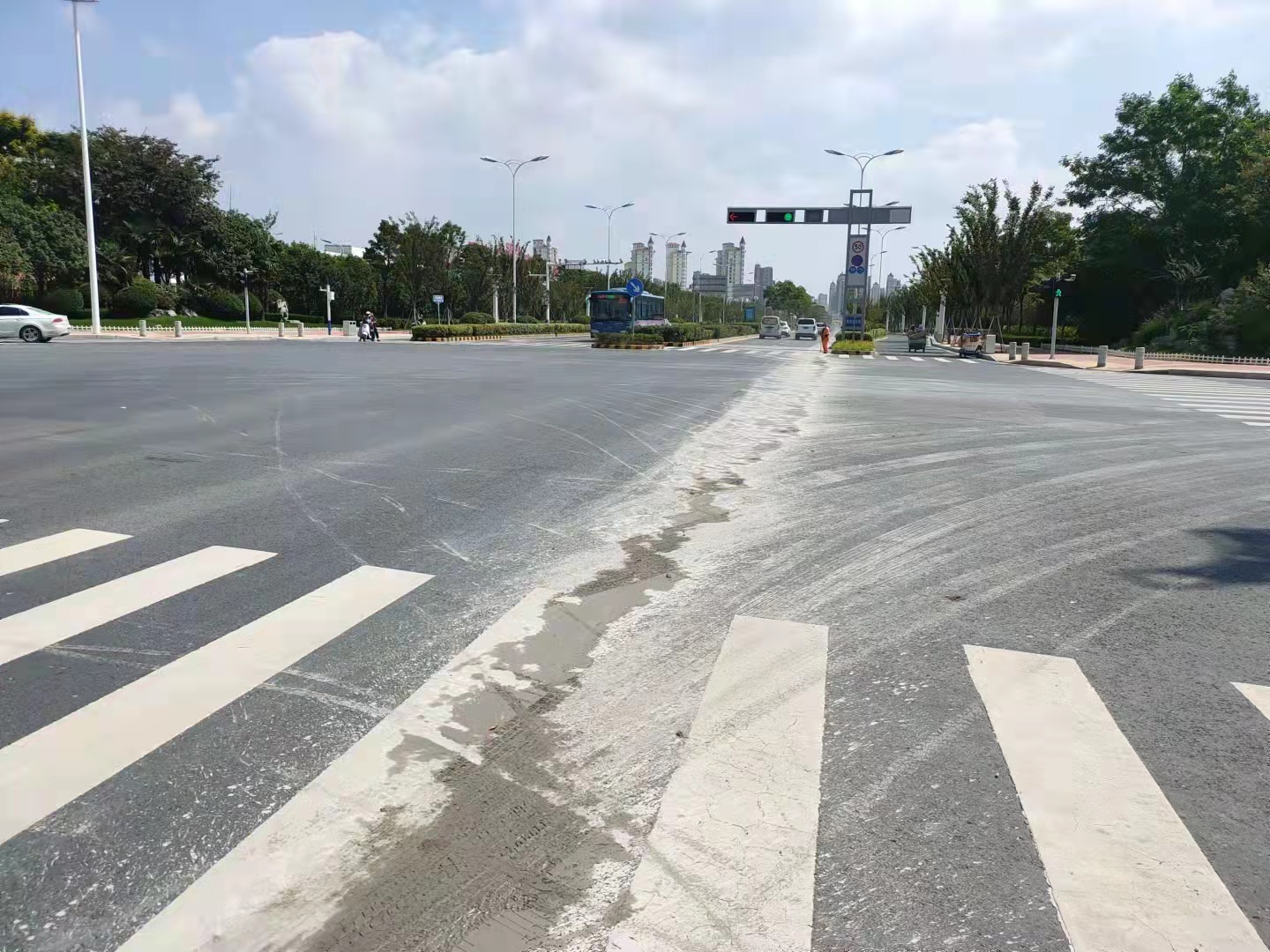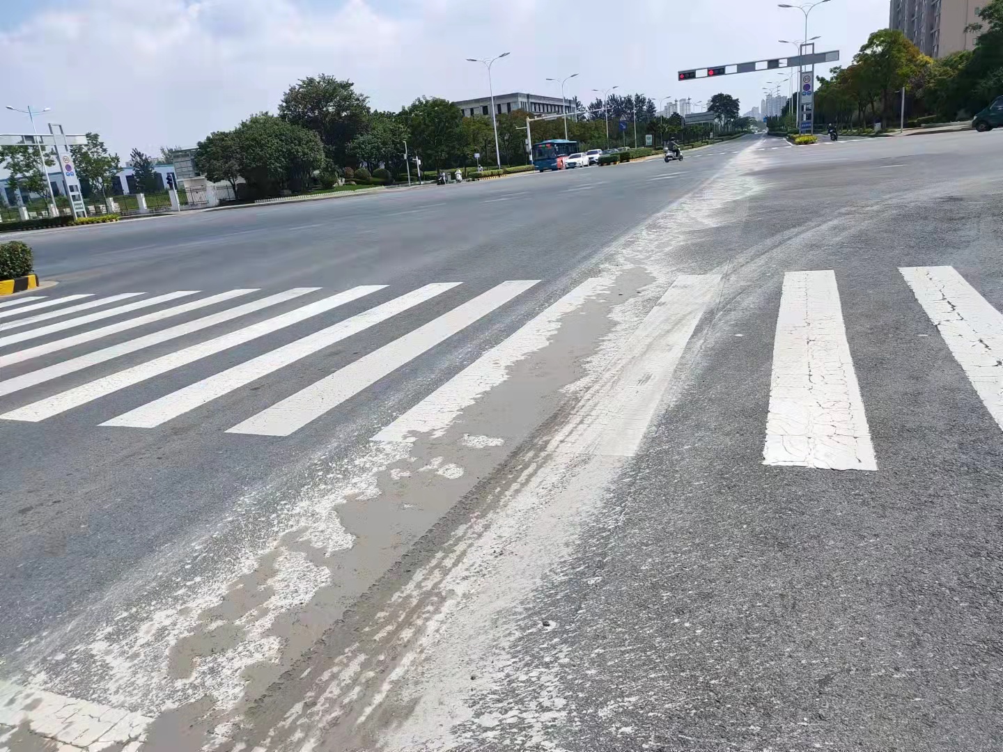 9月8日上午11時(shí)左右,園區(qū)主干道青海湖西路拋灑了大量混凝土,污染道路約2KM,建發(fā)公司接到信息后,迅速組織保潔單位對(duì)路面拋灑進(jìn)行緊急處置。
