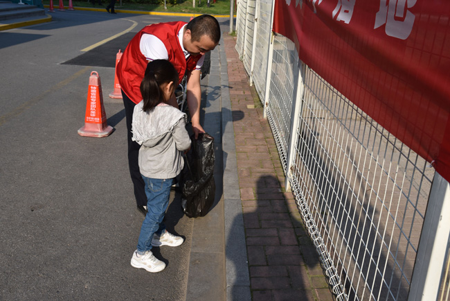 活動中,全體黨員干部、志愿者走進園區(qū)公舍開展志愿巡護,分發(fā)綠色出行環(huán)保宣傳單,開展生活垃圾分類的宣傳,動員引導園區(qū)居民著力踐行人與自然和諧共生和綠色發(fā)展理念,共同履行環(huán)保責任,形成集中宣傳效應(yīng)。同時沿途撿拾煙頭,每個人都充當著城市環(huán)境的“顯微鏡”,“彎腰、蹲下、撿拾、站起”,一個個簡單而重復的動作,撿起了“文明”、凈化了“心靈”、整潔了城市。