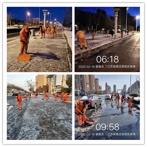 2月15日,宿遷市普降中雪,加上氣溫驟降,道路積雪結(jié)冰較為嚴(yán)重,給新冠病毒疫情防控帶來(lái)了諸多不便。為第一時(shí)間清除冰雪,恢復(fù)道路通行,園區(qū)城管局、建發(fā)公司提前部署、以雪為令,要求環(huán)衛(wèi)作業(yè)單位在做好疫情防控的同時(shí),全力開展掃雪除冰工作,力保雪后道路暢通。