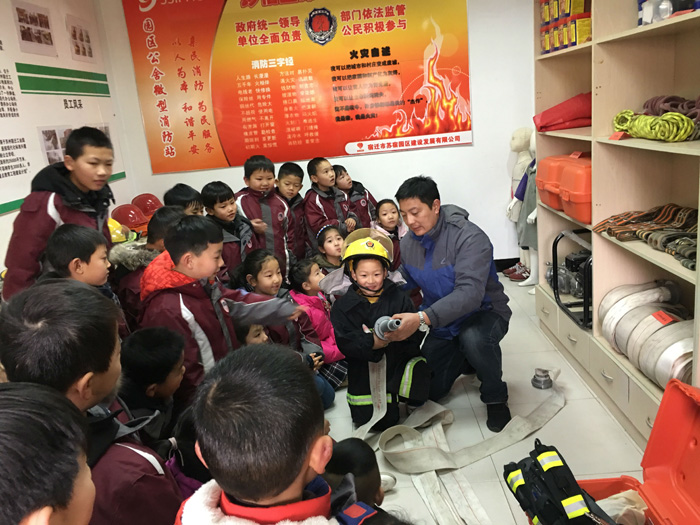 1月25日上午,蘇宿外國(guó)語(yǔ)學(xué)校師生再次走進(jìn)園區(qū)公舍微型消防站,感知消防,提高火災(zāi)安全意識(shí),學(xué)習(xí)消防知識(shí)。活動(dòng)中,工作人員向師生們介紹了消防器材的名稱(chēng)及如何使用,邀請(qǐng)小朋友體驗(yàn)穿戴消防服,講解、示范油盆滅火,模擬火災(zāi)現(xiàn)場(chǎng),體驗(yàn)火場(chǎng)逃生自救,使師生們了解災(zāi)難來(lái)臨時(shí)如何應(yīng)對(duì),通過(guò)學(xué)習(xí),確保同學(xué)們度過(guò)一個(gè)愉快的平安假期。