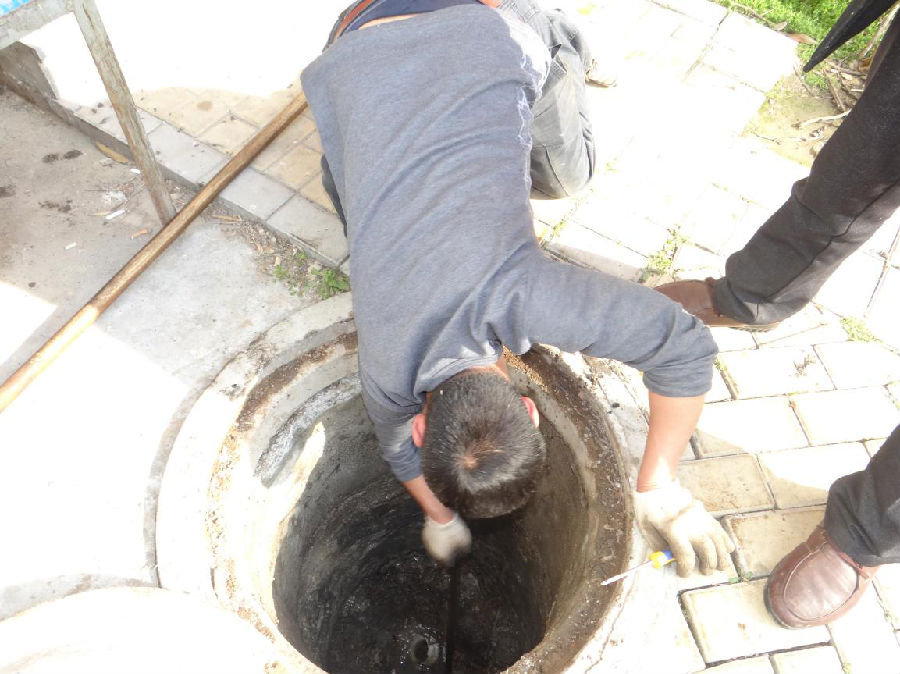 工人依次將井蓋掀開,發(fā)現(xiàn)水泥井下面油污淤積致管道堵塞,其主要原因是,每日產生的殘羹剩菜和廢棄物未經過濾網直接流入下水管道,固體垃圾進入管道遇到油污后導致管道堵塞。