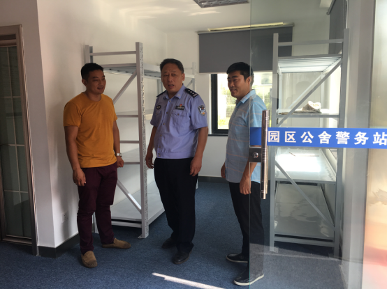 7月28日下午,園區(qū)公安分局副局長劉勇一行人來園區(qū)公舍視察公舍警務(wù)室籌建工作進展情況,物業(yè)管理部負(fù)責(zé)人范以加陪同視察。