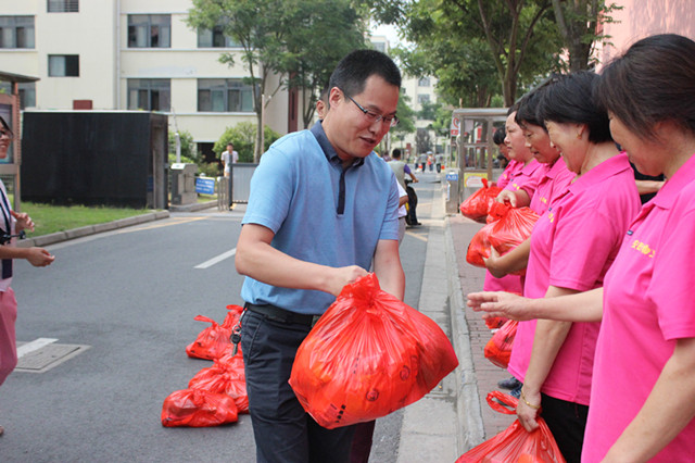 7月28日,建發(fā)公司對奮戰(zhàn)在一線的保安、保潔崗工作人員進行了慰問,給他們送上清涼,送上關愛。