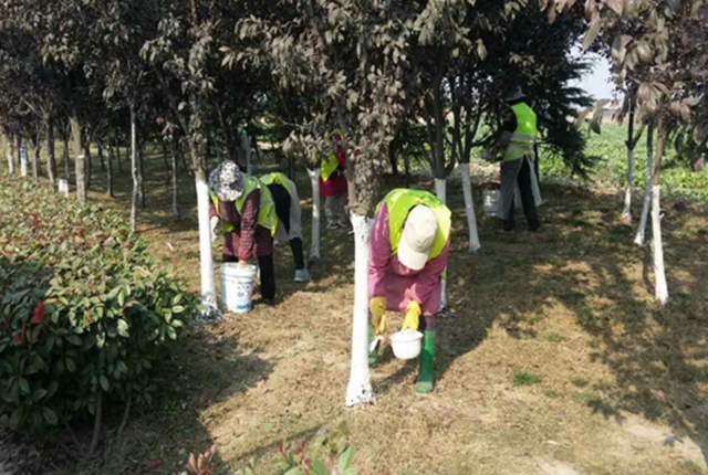 蘇宿園區(qū)啟動(dòng)冬季綠化苗木涂白工作