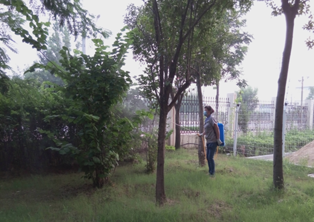 立秋以來天氣晴朗少雨,物業(yè)管理部按照園區(qū)公舍綠化養(yǎng)護計劃積極開展病蟲害防治工作,組織養(yǎng)護人員在人員流動性較少的時間段對園區(qū)公舍的花灌木、球類、綠籬等噴灑氧化樂果、阿維高氯等園林農(nóng)藥,共用30瓶農(nóng)藥,有效控制了園區(qū)公舍綠化病蟲害的發(fā)生。