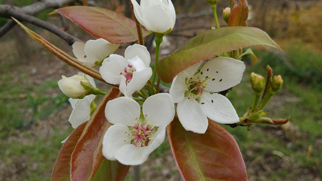 清純潔白的梨花你追我趕,競(jìng)相開放